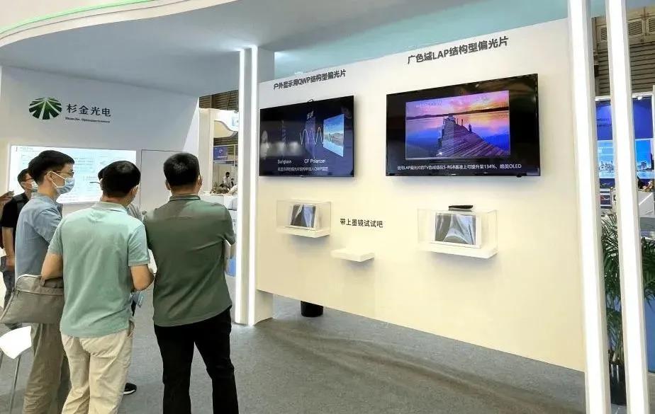 除了戶外顯示用偏光片,杉金光電還帶來了TFT-LCD TV 疊屏用改善彩虹紋偏光片、TFT-LCD TV提升色域LAP偏光片、TFT-LCD TV用超薄偏光片榮獲顯示材料創(chuàng)新銀獎(jiǎng)。以及適用于車載屏、手機(jī)等場(chǎng)景的各類偏光片產(chǎn)品。
