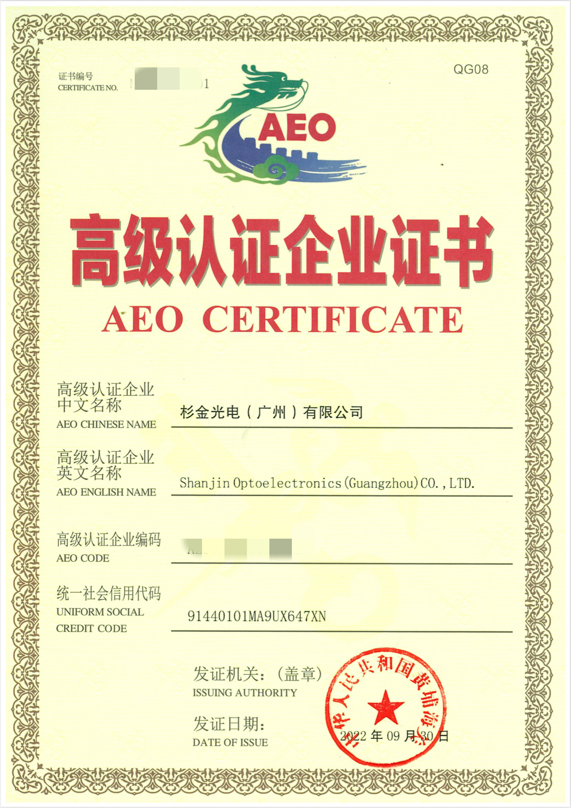 廣州法人自2022年3月起,經(jīng)過黃埔海關(guān)企業(yè)管理處及蘿崗海關(guān)認(rèn)證中心悉心指導(dǎo)與法人全體員工積極籌備,在海關(guān)的敬業(yè)及高效的工作環(huán)境下,使我司自8月4日申請(qǐng)后60日內(nèi)于2022年9月30日獲得黃埔海關(guān)頒發(fā)的AEO(Authorized Economic Operator,經(jīng)認(rèn)證的經(jīng)營(yíng)者)高級(jí)認(rèn)證企業(yè)證書。