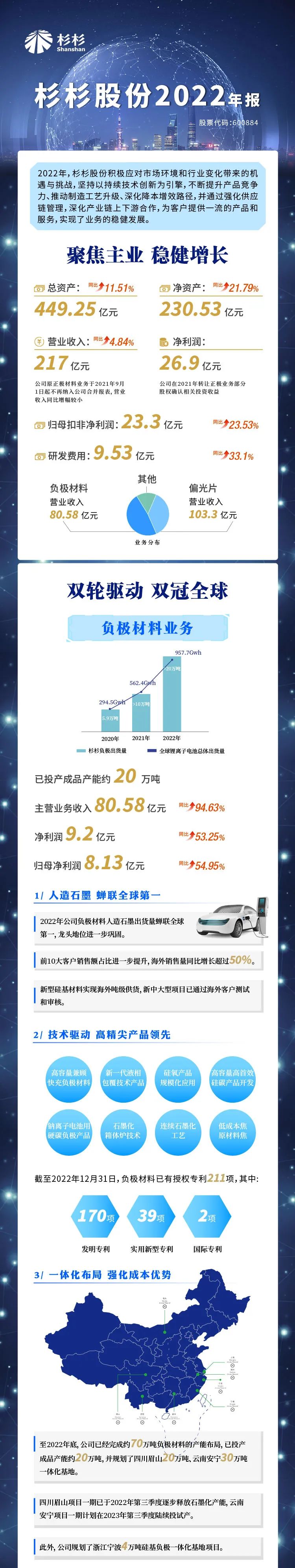 一圖讀懂杉杉股份2022年報(bào) 2023年04月20日 一圖讀懂杉杉股份2022年報(bào)