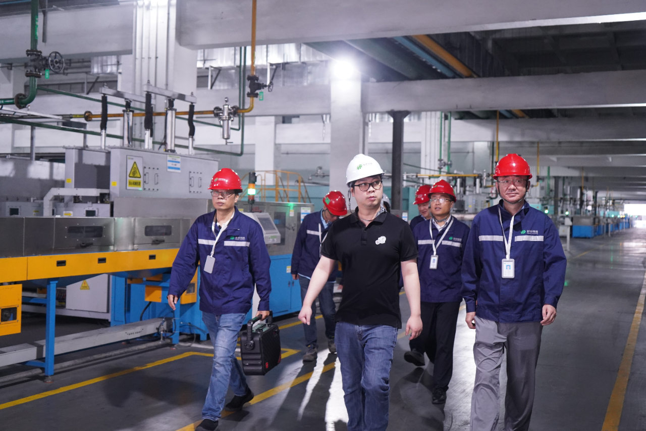 鄭駒深入車間了解產(chǎn)線建設(shè)、工藝流程。眉山基地負(fù)責(zé)人匯報(bào)各產(chǎn)線投產(chǎn)進(jìn)度及下半年生產(chǎn)經(jīng)營目標(biāo)。