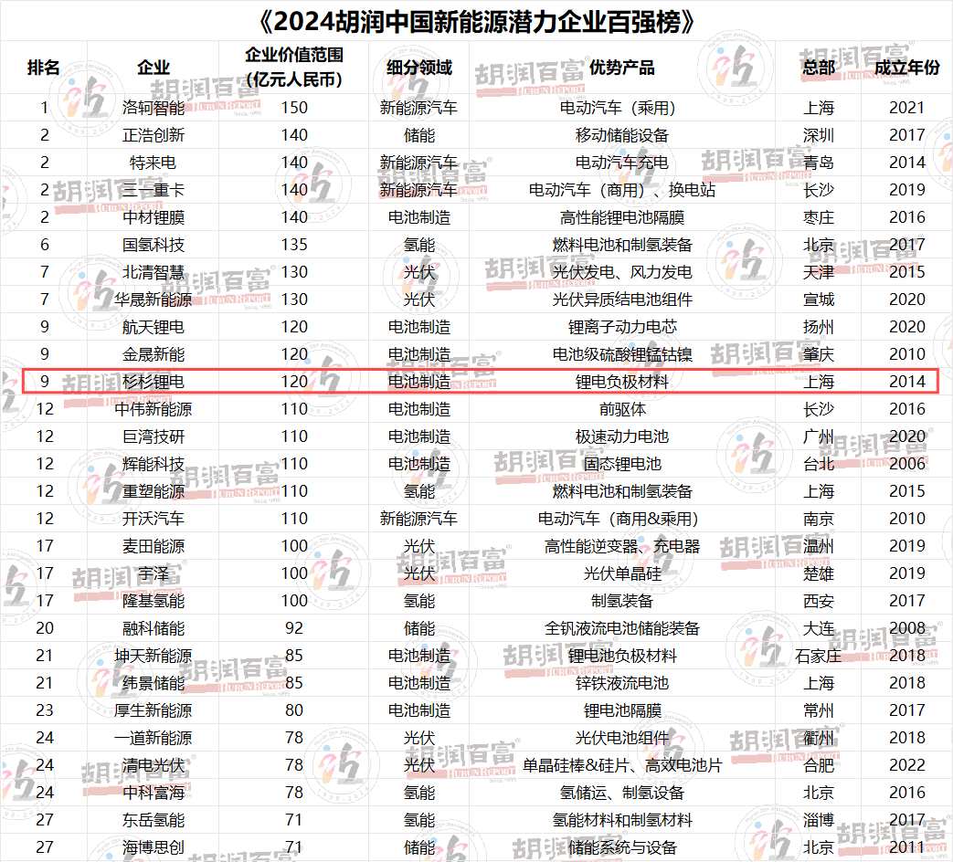 胡潤研究院作為世界知名的財(cái)富研究機(jī)構(gòu),其發(fā)布的榜單在業(yè)界具有較高的權(quán)威性和影響力。《2024胡潤中國新材料企業(yè)百強(qiáng)榜》列出了中國新材料領(lǐng)域最具價值的非國有企業(yè)。《2024胡潤中國新能源潛力企業(yè)百強(qiáng)榜》列出了成立于2000年后,企業(yè)價值在10億元至150億元人民幣之間,中國新能源領(lǐng)域最具發(fā)展?jié)摿Φ姆巧鲜衅髽I(yè),按照企業(yè)估值進(jìn)行排名。