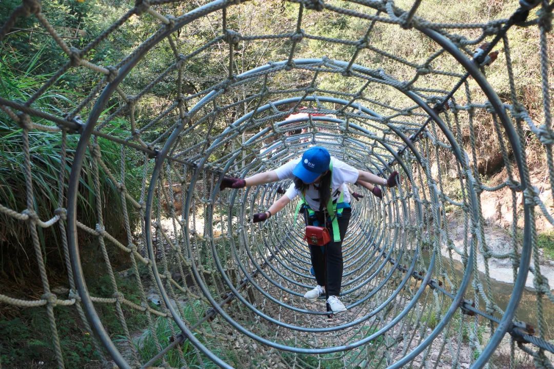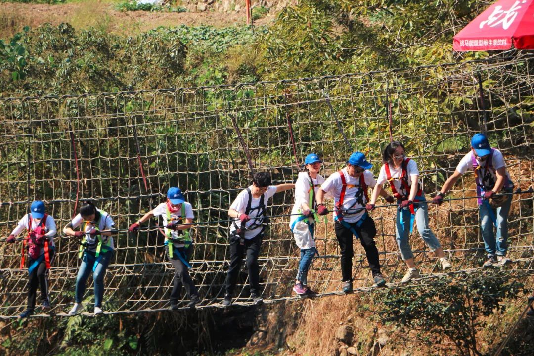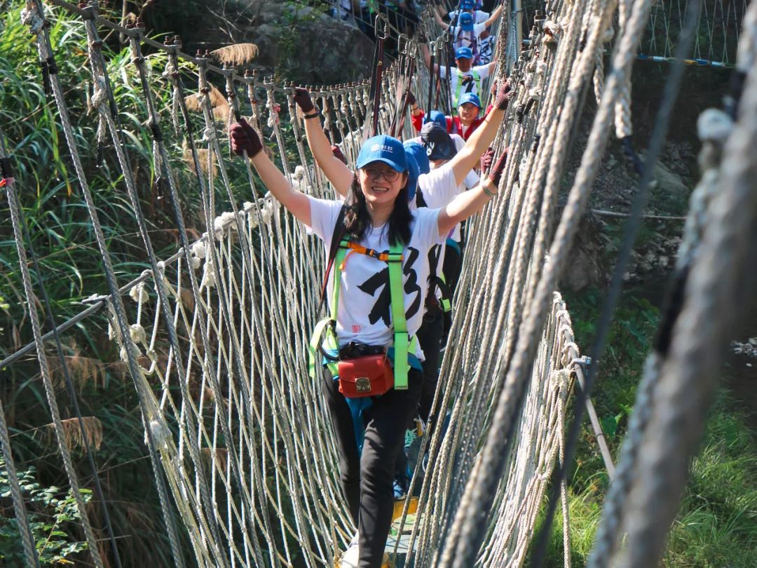 全部懸空的16道橋索僅靠一條安全繩和一雙手套,杉杉股份全員順利抵達(dá)終點。