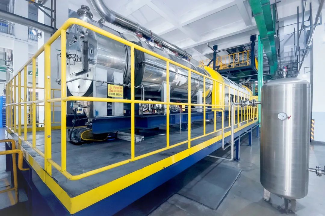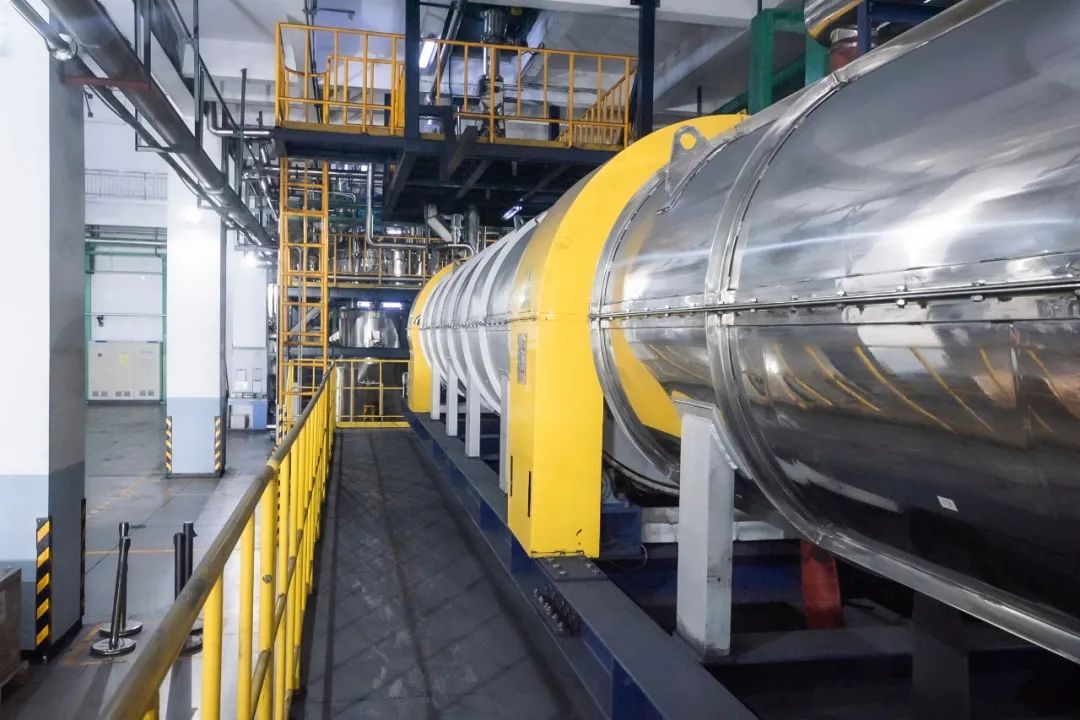外觀普通而整潔的白色廠房里,三、四層樓高的產(chǎn)線設(shè)備,通過粗細(xì)不同、繁密交織的管道,連接一道道復(fù)雜的工藝。滾動的窯爐中,中控顯示跳動的數(shù)字背后、指針移動的反應(yīng)釜里,是寧夏杉杉能源源源不斷的生產(chǎn)力。